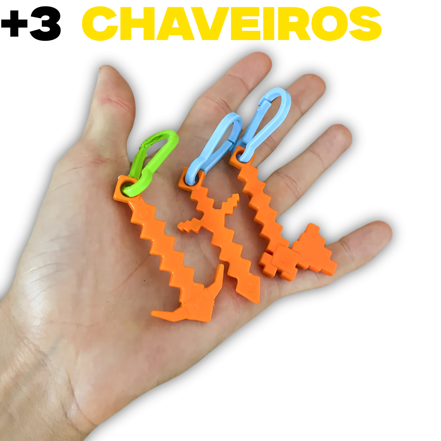 Brinde: Acompanha 3 chaveiros + Jogo da memória para recortar no verso da caixa
